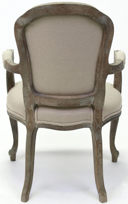 The nubbly texture of the linen upholstery fabric beautifully complements the artistically curved lines and distressed finish of the oak frame, and the soft beige color creates warmth and coordinates well with other colors in your design palette.